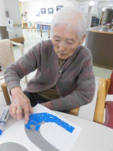小さい花弁を折っています。根気のいる作業ですが、丁寧に折って下さいます。