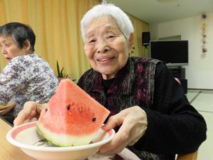 まずは、大きな紙のスイカで練習です。