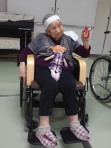 応援団も頑張ります。かつぼ園最高齢の103歳