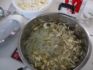 フロア内にごぼうの美味しそうな香りがただよったあとは、調味料等を入れます(^▽^)/