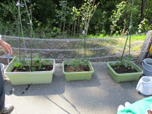 5月14日 プランター菜園に「ミニトマト」と「きゅうり」の苗を植えました。
