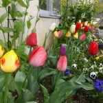 毎年4月になると、かつぼ園の花壇はチューリップとパンジー・ビオラでカラフル