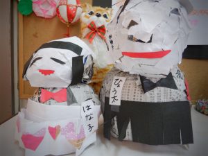 なぜかミノムシと合わせて一足早く雪だるまのカップルがショートステイに登場…😅