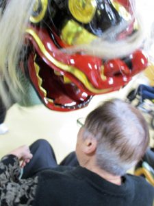 獅子舞に頭をかじってもらうことで、獅子舞がその人の邪気を食べてくれるそうです。